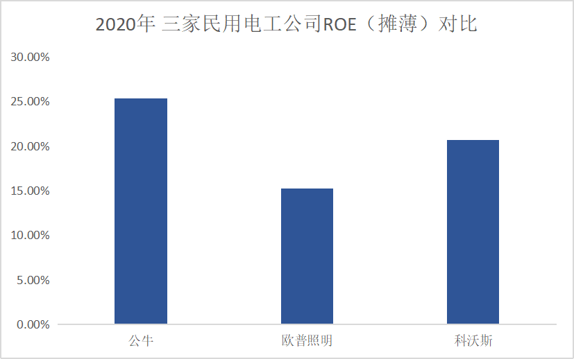 就净资产收益率来看,上市第一年,公牛ROE(摊薄)高达25.32%,与此对比,同为民用电工龙头的上市企业中,欧普照明、科沃斯这一数据分别为15.24%、20.68%。