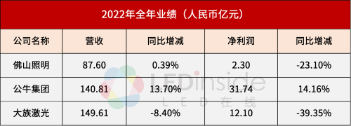 4月10日,佛山照明、公牛集团、大族激光公布2022全年业绩。