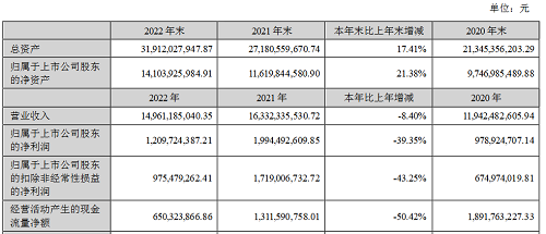 2022年,大族激光的营收为149.61亿元,同比下降8.40%;归母净利润为12.10亿元,同比下滑39.35%。