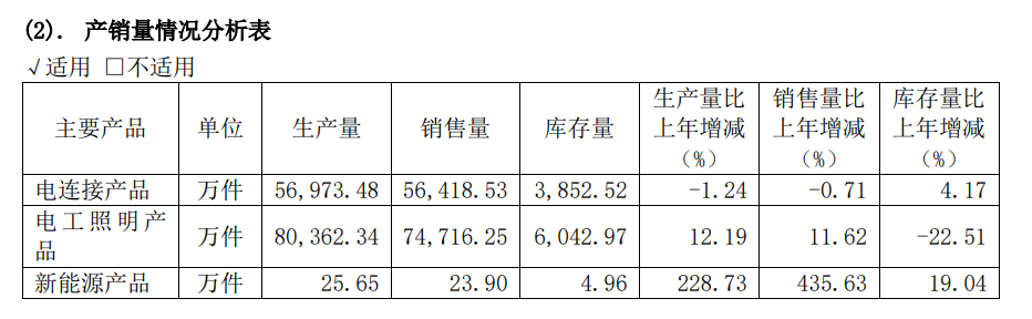从产销量情况来看,其中,新能源产品库存较去年同期增长较大,主要系本年销量较好,公牛集团战略备库。