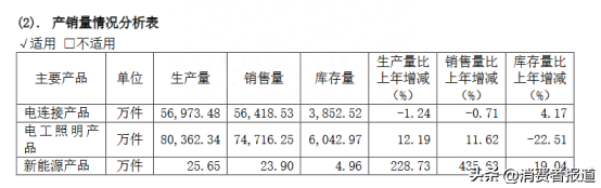 电连接产品的生产量、销售量和库存量均与去年相差不大。
