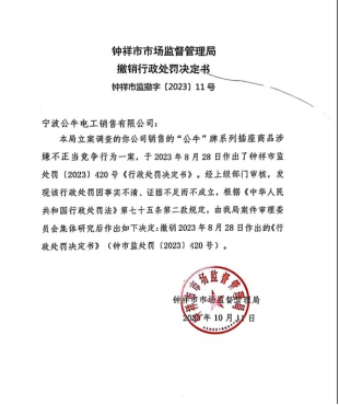 日前,公牛集团股份有限公司(下称“公牛集团”,603195.SH)因“不正当竞争”备受关注,不过其后公司表示该处罚遭撤销行政处罚。