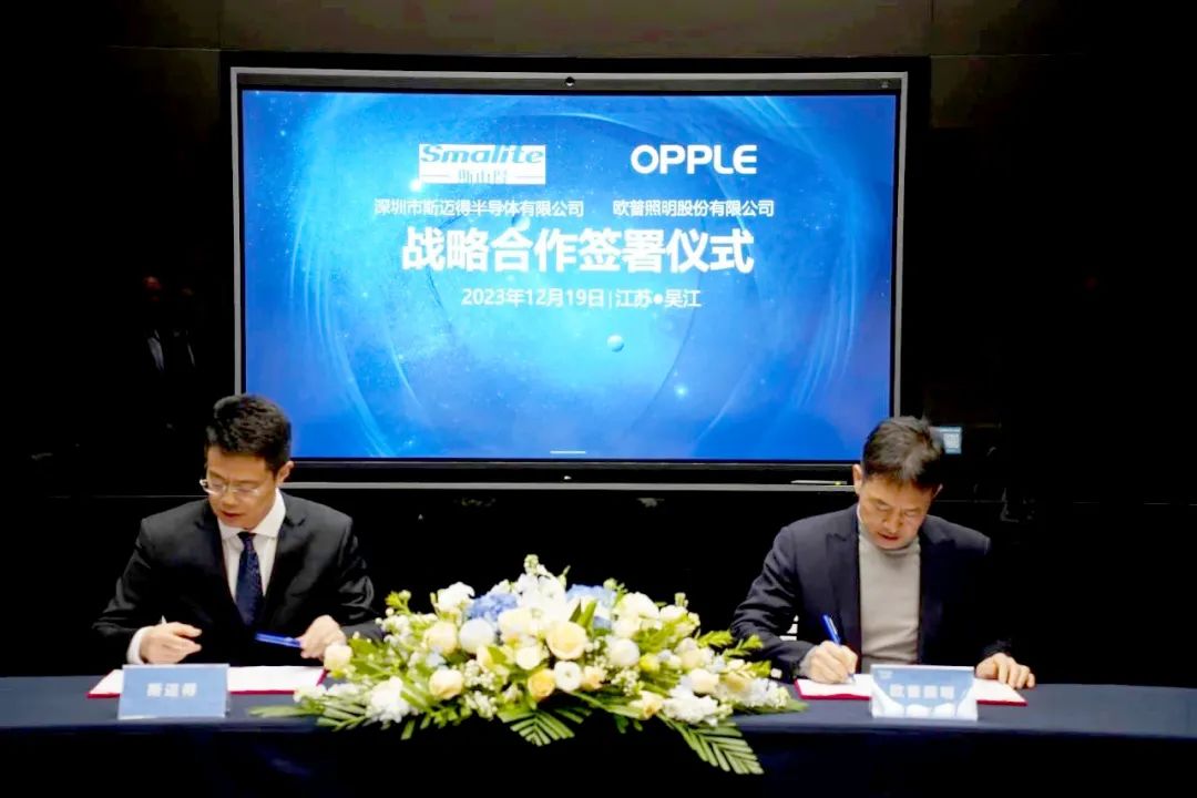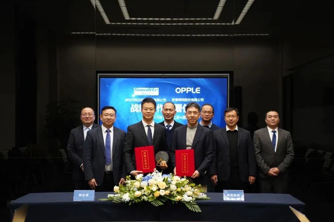 近日,欧普照明股份有限公司与鸿利智汇旗下子公司深圳市斯迈得半导体有限公司签订战略合作协议。欧普照明董事长王耀海、研发副总裁于杰,鸿利智汇集团董事长李俊东,斯迈得总经理张路华等出席了签约仪式,共同见证此次战略合作的达成。