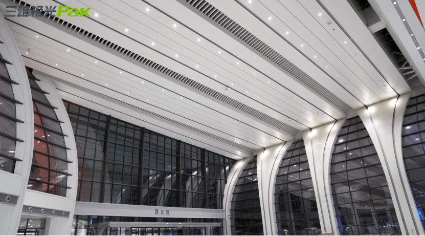 据介绍,白云站作为亚洲最大的铁路车站,其空间高大宽敞,照明设计需要利用灯具打造出空间层次感和现代感。三雄极光参考高层建筑面光投光手法,反复推敲白云站投光的均匀性、合理性,使白云站整体灯光柔和并融入建筑。本项目以结构性投光为主,线性灯为辅,采用现代时尚、大气的手法去更好地服务建筑。