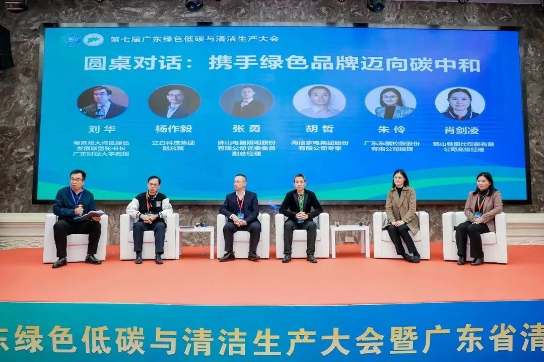 12月27日,第七届广东绿色低碳与清洁生产大会在广州举行。会上,佛山照明荣获“2023年首批绿色品牌示范企业”称号,是本次表彰名单中唯一一家照明企业。在大会圆桌对话环节,佛山照明副总经理张勇围绕“携手绿色品牌迈向碳中和”主题,与多名专家学者、企业代表展开探讨,并分享了“佛山照明绿色品牌建设的实践经验与成果”。