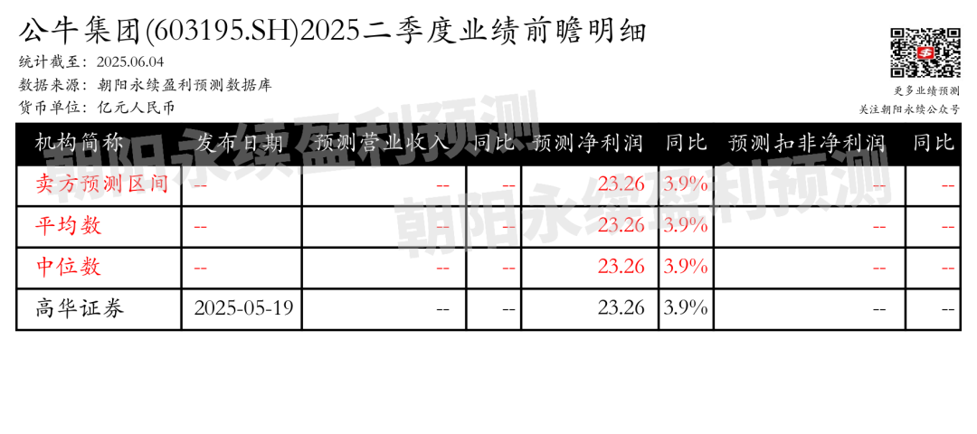 截至2025年06月04日,根据朝阳永续季度业绩前瞻数据:
