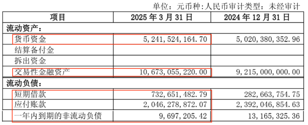 截至2025年3月31日,其货币资金为52亿元、交易性金融资产约107亿元。同期,其短期借款、一年内到期的非流动负债合计不足8亿元,资金链十分雄厚。