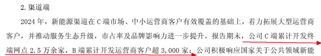 按照公牛集团的说法,截至2024年末,其新能源业务C端累计开发终端网点2.5万余家、B端累计开发运营商客户超3000家。