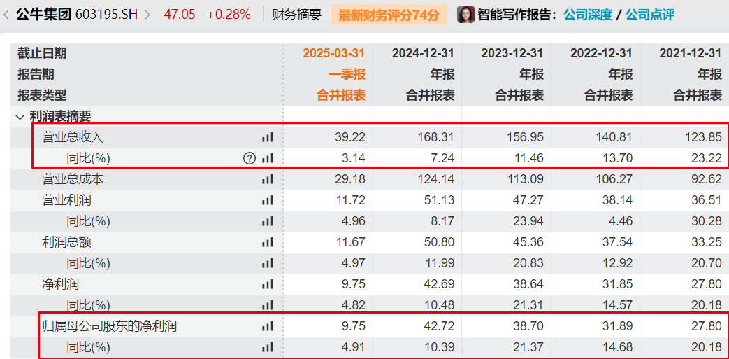 财报显示,2021年至2025年一季度,其营收增速从23.22%下滑至3.14%,归母净利润增速从20.18%下挫至4.91%。