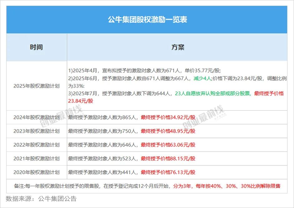 2025年4月,公牛集团推出2025年特别人才持股计划,单价为71.54元/股。经过调整之后,7月2日完成非交易过户,最终价格为49.39元/股,持股期限不低于12个月。
