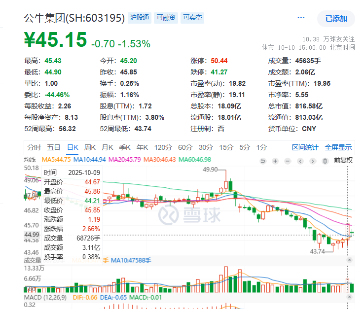10月9日,公牛集团(603195.SH)发布公告,公司实际控制人之一阮学平拟通过大宗交易的方式减持公司股份不超过36,171,753股,即不超过公司目前总股本2%。减持期间为2025年10月31日至2026年1月30日。