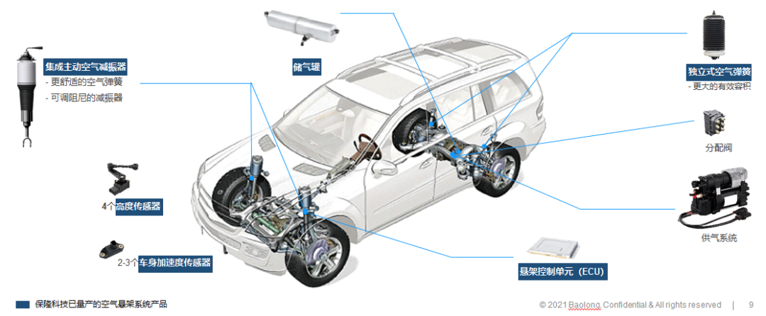 保隆科技已量产的空气悬架系统产品;图片来源:保隆科技