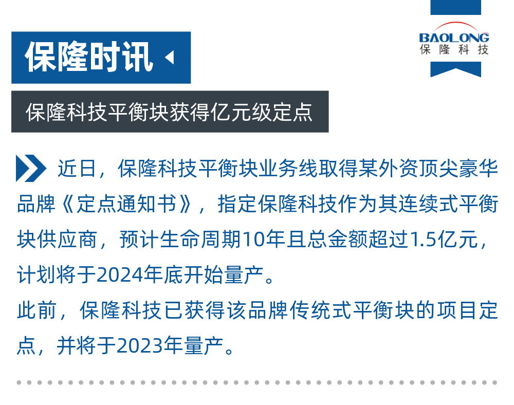 传统业务持续增长,保隆科技平衡块获得亿元级定点