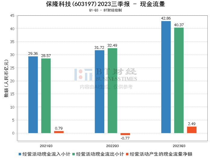 现金流量方面,保隆科技的经营活动产生的现金流量净额由上年同期的-7728.85万元转正至2.49亿元,这表明公司的现金流状况有了显著改善。经营活动产生的现金流入小计从上年同期的31.72亿元增至42.86亿元,现金流出小计也从32.49亿元增至40.37亿元。
