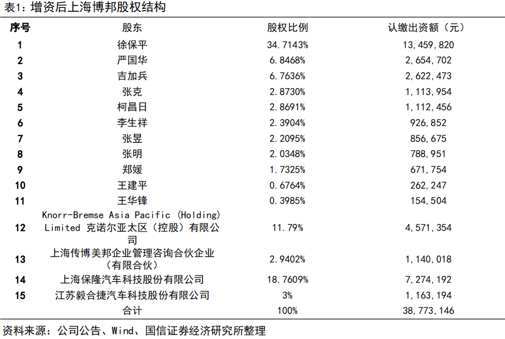 增资上海博邦,持股比例达18.7%。上海博邦在汽车微电机领域具备技术、品牌优势,公司以自有资金3,500万元人民币对其增资,取得增资后7.00%股权,进一步完善空气悬架供气单元核心零部件自制率,丰富了业务合作模式以及协同国际化的运营,保障核心零部件资源安全,提高产品核心竞争力。