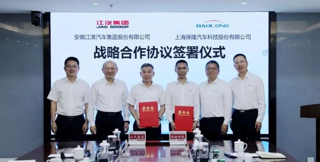 7月24日上午,在江淮汽车合肥总部,保隆科技与江淮汽车签订战略合作协议。江汽集团控股公司党委书记、董事长、总经理项兴初,江汽集团控股公司董事、江汽集团股份有限公司副总经理马翠兵,采购中心总经理秦战江、技术中心底盘设计院院长吴江等领导,保隆科技董事长兼总裁张祖秋、副总裁王胜全、智能悬架业务单元总经理兼合肥保隆总经理王贤勇、智能驾驶业务单元总经理兼技术中心总经理王斌等领导出席仪式。秦战江、王贤勇分别代表双方签约。