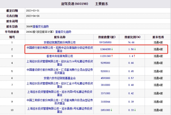 截至今年一季度末,中国银行股份有限公司-招商中证白酒指数分级证券投资基金持股数量减少至12464388股,占流通股比例1.56%;大家人寿保险股份有限公司-万能产品已退出迎驾贡酒前十大流通股东。