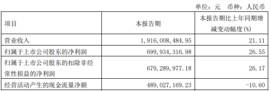 同日,迎驾贡酒发布的2023年第一季度报告显示,第一季度,公司实现营业收入19.16亿元,同比增长21.11%;归属于上市公司股东的净利润7.00亿元,同比增长26.55%;归属于上市公司股东的扣除非经常性损益的净利润6.79亿元,同比增长26.17%;经营活动产生的现金流量净额4.89亿元,同比减少10.60%。