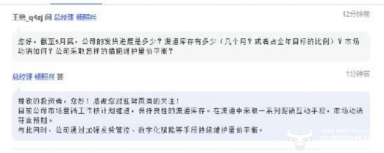有投资者提问“产能方面并未全负荷生产的状态下,为何大额投资新建产能?”对此,杨照兵表示,该项目有利于进一步提升公司原酒酿造和陈贮能力,巩固核心竞争力,实现公司高质量可持续发展。且对于公司库存问题,他表示目前公司市场营销工作按计划推进,保持良性的渠道库存。