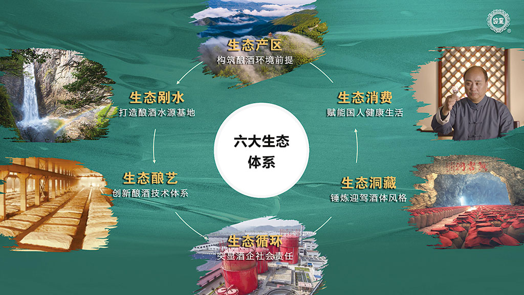 一是创新“六大生态”体系。生态产区——通过白酒产区建设,构筑酿酒环境前提,产区霍山荣获“世界美酒特色产区”;生态剐水——立足优质酿酒水源,打造水源基地,佛子岭水库成功入选“中国好水”水源地;生态酿艺——秉承“非遗”多粮传统工艺,创新酿酒技术体系,6次荣获“中国白酒酒体设计奖”;生态循环——践行ESG理念,构建企业可持续发展生态,率先荣获白酒行业国家级绿色工厂;生态洞藏——创新陈贮工艺,锤炼迎驾酒体风格,形成了特有的“醉得慢、醒得快、有点甜”饮用品质特征;生态消费——倡导“少喝酒、喝好酒”,引导理性消费、健康消费,为人民健康生活、幸福生活赋能。