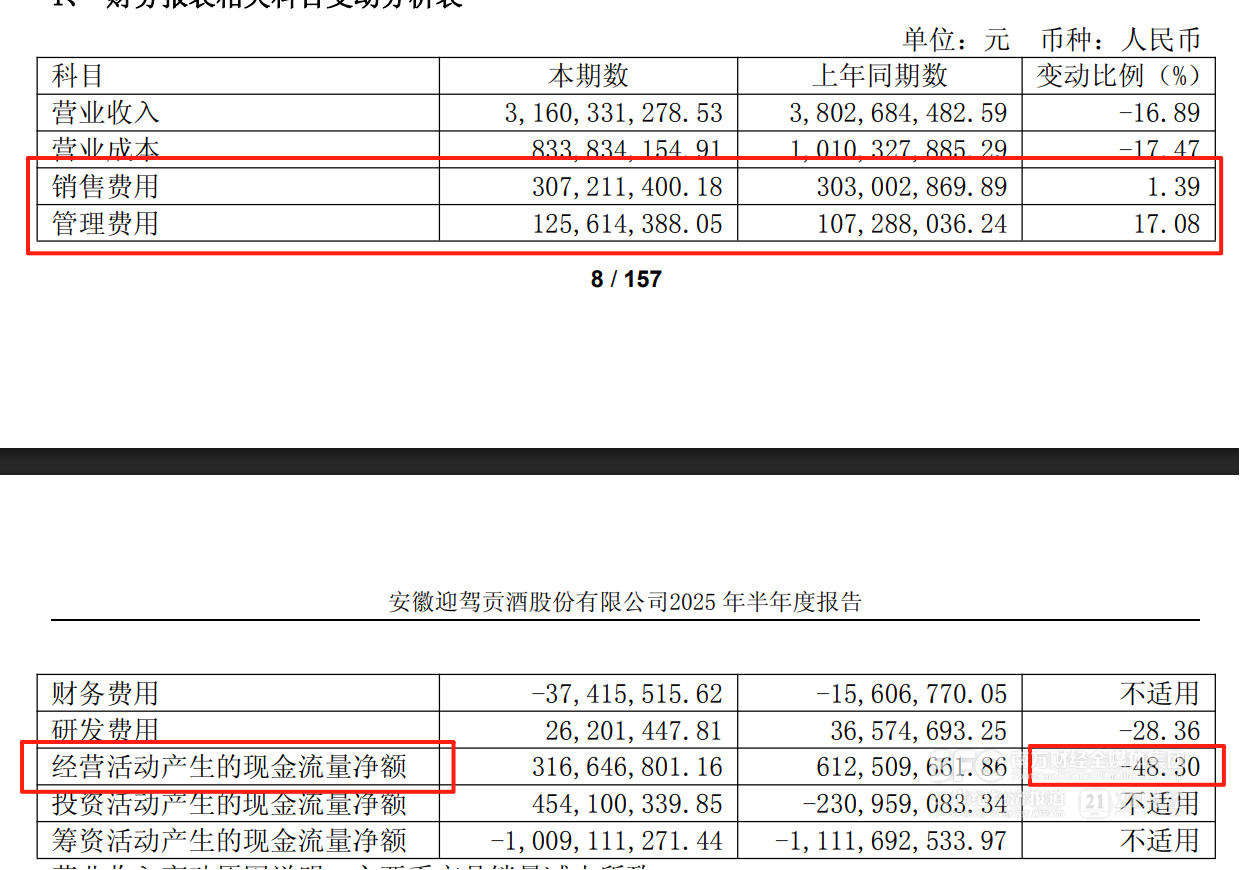 (迎驾贡酒的费用、经营现金流变化)