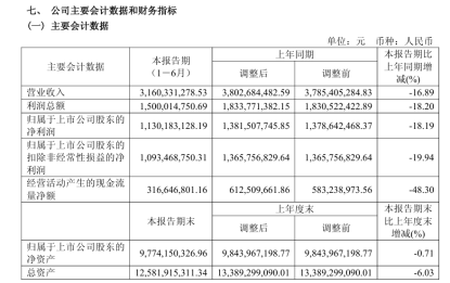 在这样的大背景下,上半年迎驾贡酒实现营收31.60亿元,同比下滑16.89%;实现归母净利润11.30亿元,同比下降18.19%。其中第二季度单季实现营收11.13亿元,同比下降24.13%;归母净利润3.02亿元,同比下降35.2%。