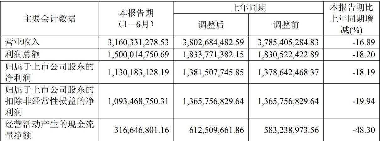 整体来看,这是迎驾贡酒自2020年以来首次半年度营收净利双降。2025年上半年公司营收在31.6亿元左右,同比大致下滑16.9%;净利润在11.3亿元左右,同比大致下滑18.2%。