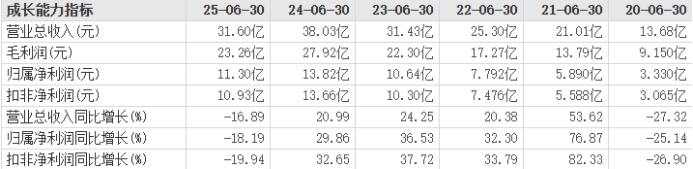 不过,到了2025年1—6月(报告期内),迎驾贡酒营业收入下滑至31.6亿元,同比下降16.89%;净利润为11.34亿元,同比下降18.19%,这是迎驾贡酒自2021年进入业绩高速增长后,首次出现半年报营收与净利润双降。