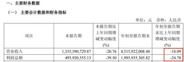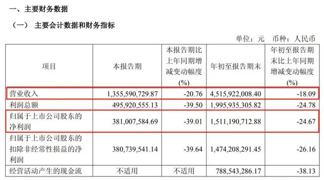 前三季度财报数据显示,迎驾贡酒营收 45.16 亿元,同比下滑 18.09%;归母净利润 15.11 亿元,同比下滑 24.67%,业绩目标完成度不足 6 成。业绩下滑的背后,是产品、渠道、市场的多重压力。