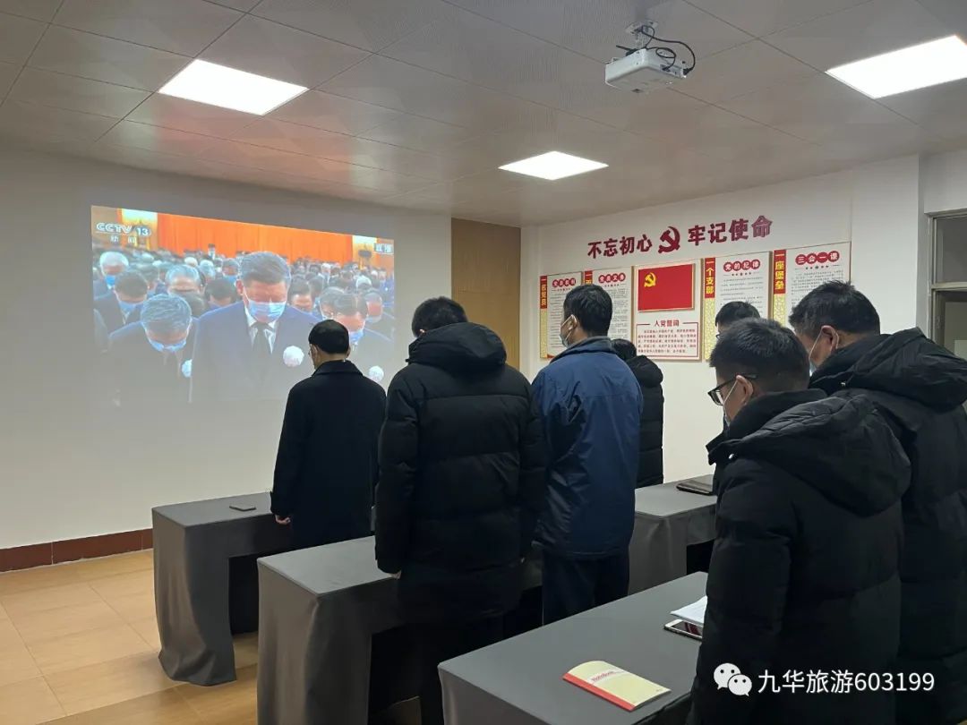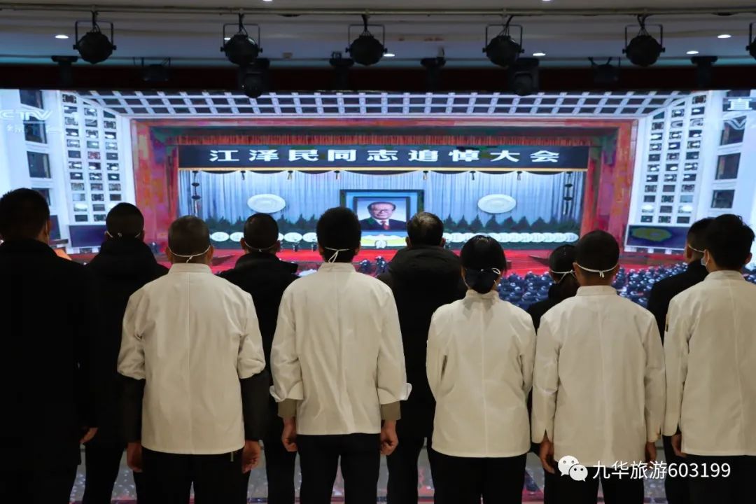 12月6日上午10时,党中央、全国人大常委会、国务院、全国政协、中央军委在北京人民大会堂隆重举行江泽民同志追悼大会。九华旅游党委组织全体在岗职工认真收听收看追悼大会直播,全程庄严肃穆,沉痛悼念我党我军我国各族人民公认的享有崇高威望的卓越领导人,深切缅怀江泽民同志的光辉业绩,颂扬江泽民同志的伟大情操和崇高品质。