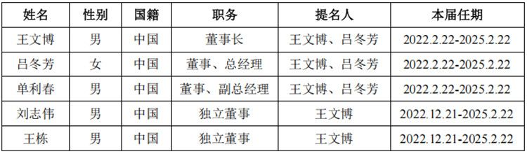 天有为董事会有5名董事成员,非独立董事包括王文博、吕冬芳夫妇和副总经理单利春,独立董事刘志伟、王栋均为王文博提名。