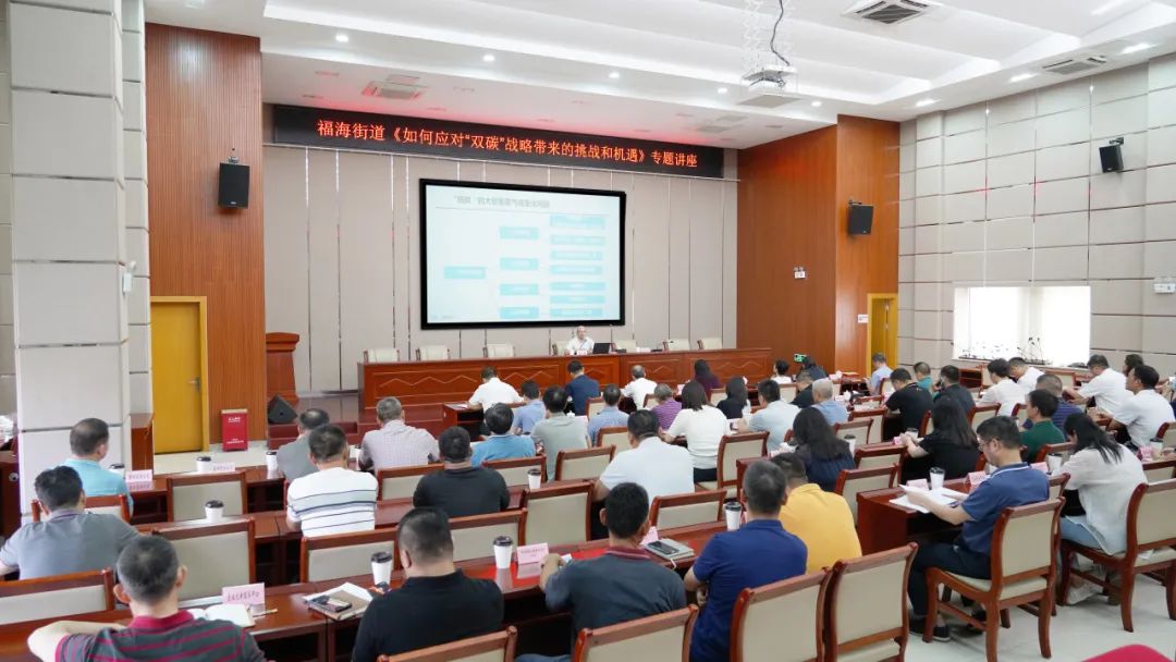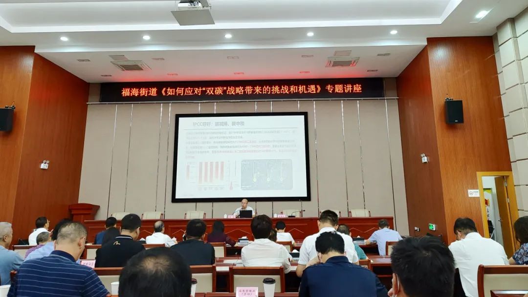 8月15日,在首个“全国生态日”当天,深圳市福海街道召开理论学习中心组(扩大)学习会,大会邀请嘉环科技双碳专家李欢作《如何应对“双碳”战略带来的挑战和机遇》宣讲,旨在进一步深化福海“双碳”工作,为实现转型发展提供新理论、新思路、新方向。