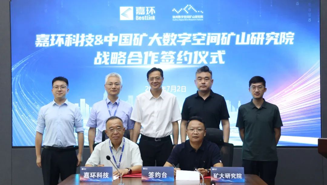2025年7月2日,嘉环科技股份有限公司(以下简称“嘉环科技”)与中国矿业大学数字空间矿山研究院(以下简称“数字空间研究院”)于南京正式签署战略合作协议。双方将整合优势资源,在智慧矿山领域开展深度合作,共同推动矿山行业向数字化、智能化、安全高效方向转型升级。嘉环科技董事长宗琰、产品研发BG总经理骆德龙、智慧矿山军团军团长李新全,数字空间研究院执行院长王伟博士、副院长张学谦等核心团队成员共同出席了签约仪式。