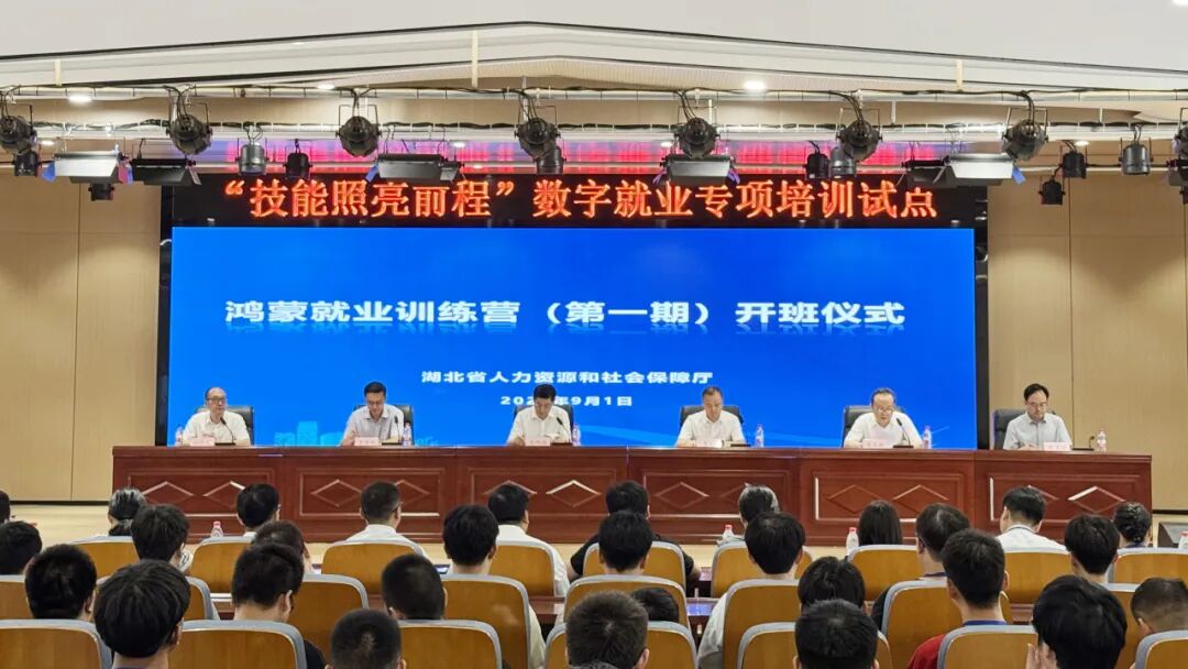 仪式上,王伟雄副厅长出席开班仪式并讲话。他指出,高校毕业生是宝贵人才资源,省委、省政府及省人社厅始终重视青年就业,2022年以来全省连续三年新增超40万高校毕业生等青年留鄂来鄂就业创业,开展超70万人次补贴性技能培训。当前鸿蒙系统创造大量新职业,此次训练营作为“技能照亮前程”数字就业专项培训首发试点,要提供可复制经验,构建数字技能培育体系。他对学员提三点要求:珍惜学习机会、遵守全封闭管理规定、树立正确择业观,同时要求华为、嘉环科技高标准落实教学与就业服务,助力学员成长为鸿蒙技术人才,为数字经济注入活力。