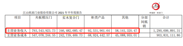 公开资料显示,江山欧派是一家集研发、生产、销售、服务于一体的专业制门企业。公告披露,2021年上半年江山欧派夹板模压门、实木复合门、柜类产品、其他产品的营业收入分别为7.94亿元、3.46亿元、9253.20万元、5814.13万元,同比分别增长34.27%、9.61%、17.22%、482.20%。