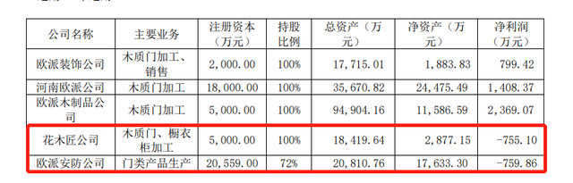 从参股公司来看,江山欧派全资子公司花木匠和控股子公司欧派安防上半年合计亏损1515万元。具体来看,花木匠主营业务为木质门、橱衣柜加工,2021年上半年净亏损755.1万元;欧派安防主营门类产品生产,持股比例为72%,2021年上半年净亏损759.86万元。