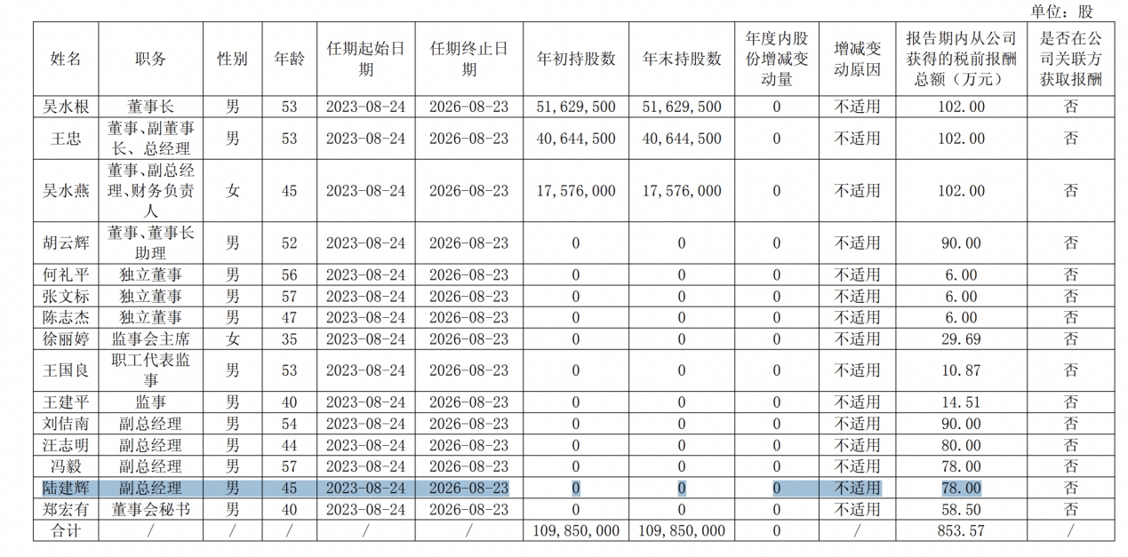 公开资料显示,陆建辉,2003年至2004 年任东芝信息有限公司解析主管,2005年至2006 年任江山奇龙化工建材有限公司车间主任,2006年至2009年任江山欧派门业有限公司制造部经理,2009年至2012 年任江山润安门业有限公司副总经理,2012年起任公司烤漆事业部负责人。2024年,陆建辉从江山欧派获得的税前报酬总额78万元。