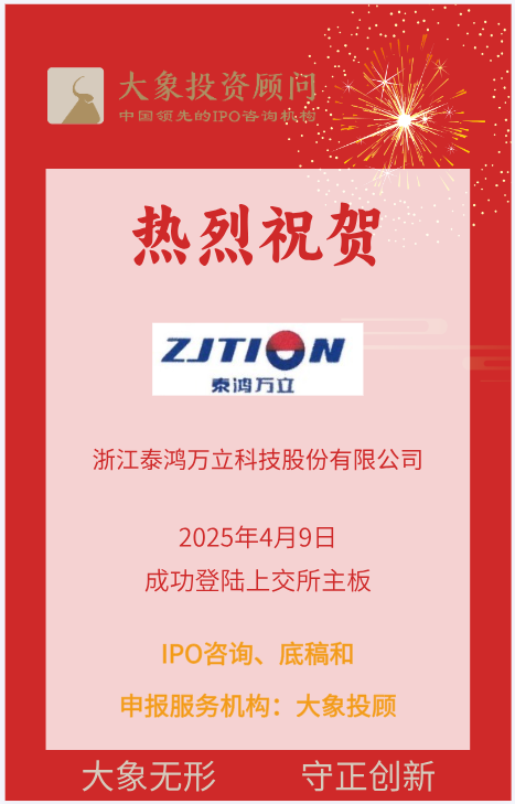 2025年4月9日,大象投顾客户——浙江泰鸿万立科技股份有限公司成功登陆上交所主板!