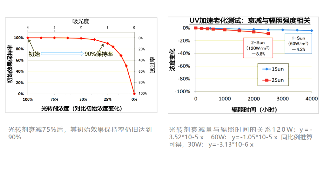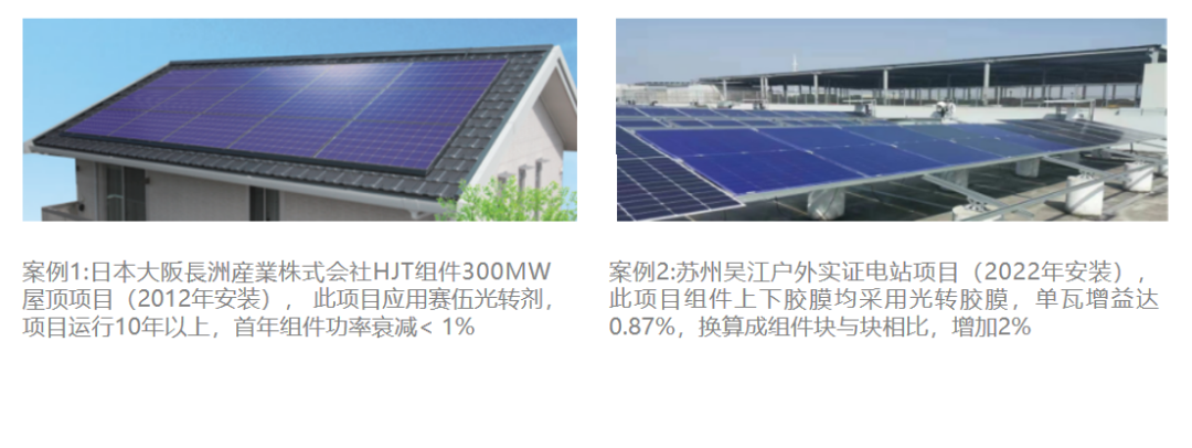 与此同时,光转膜吸收了对电池有损害作用的紫外线(UV),降低了电池的老化速度,延长光伏组件的使用寿命。