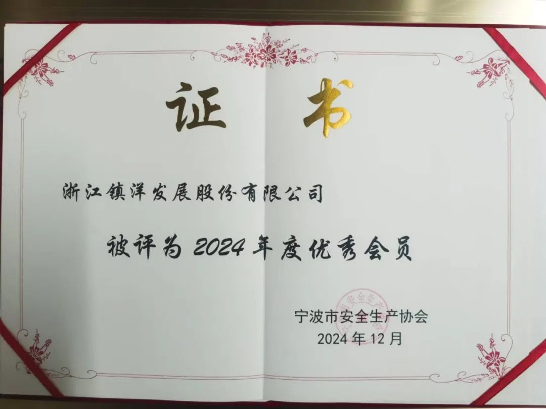 12月26日,宁波市安全生产协会四届四次会员大会举行。会上,镇洋发展被评为2024年度宁波市安全生产示范企业和协会优秀会员。