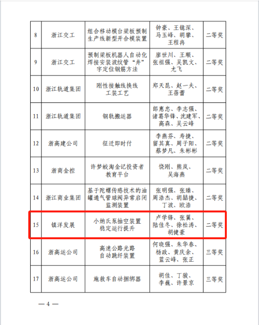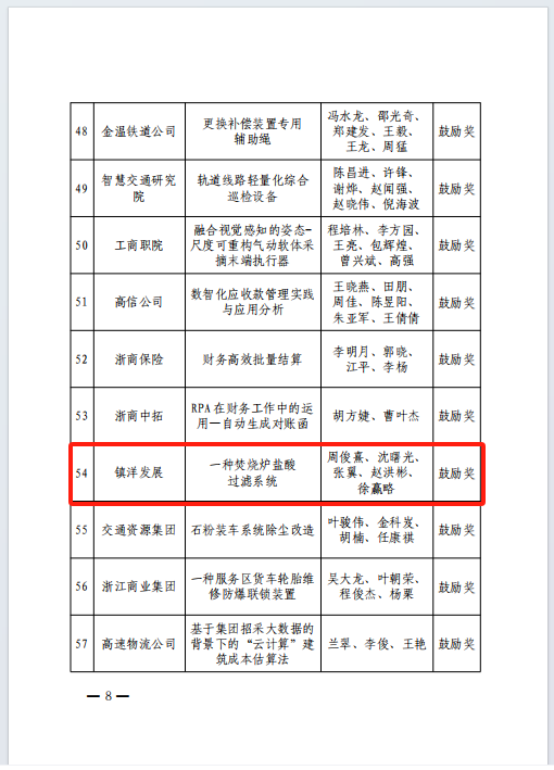 12月25日,集团工会公布了第四届“五小”创新竞赛优秀成果和优胜单位,镇洋发展报送的项目《小纳氏泵抽空装置稳定运行》《一种焚烧炉盐酸过滤系统》分别获得二等奖和鼓励奖。