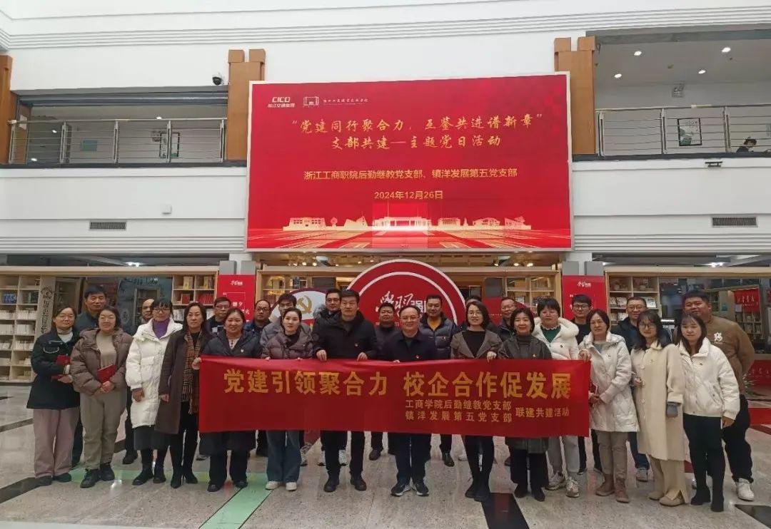 12月26日下午,镇洋发展第五党支部与浙江工商职院后勤继教党支部开展支部共建活动,镇洋发展党委副书记、纪委书记、工会主席任列平,浙江工商职院党委委员、副院长张鹏飞,以及双方支部党员代表约30人参加活动。