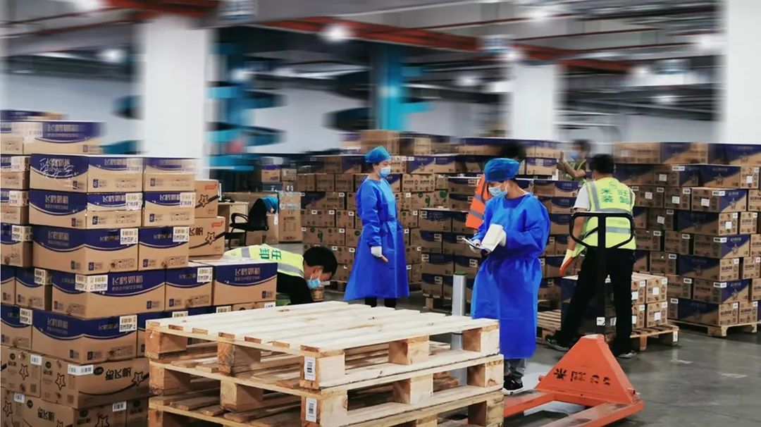 (仓储中心工作人员打单、分拣、打包母婴保供品。)