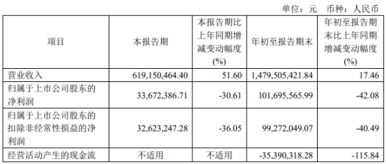 2024年前三季度,比依股份实现营业收入14.80亿元,同比增长17.46%;归属于上市公司股东的净利润1.02亿元,同比下降42.08%;归属于上市公司股东的扣除非经常性损益的净利润9927.20万元,同比下降40.49%;经营活动产生的现金流量净额-3539.03万元,同比下降115.84%。