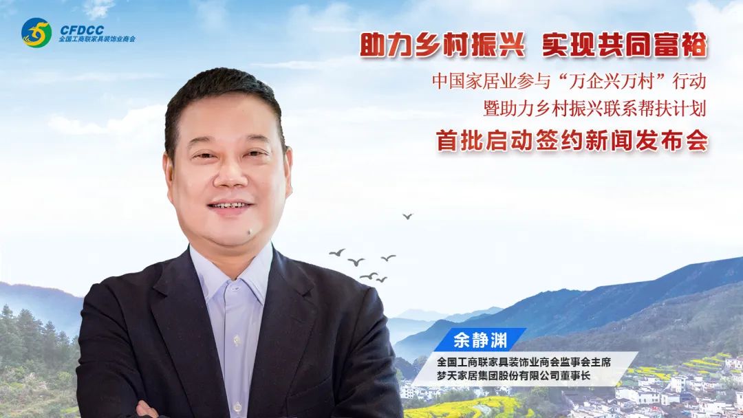 启动签约仪式上,梦天家居董事长余静渊表示:“万企兴万村”行动责任重大,使命光荣。企业参与乡村振兴,既是投身国家战略的具体举措,也是加快自身转型升级的重要机遇,更是弘扬优秀企业家精神的重要载体。感谢全国工商联、国家乡村振兴局及商会领导对于梦天的信任,为助力乡村振兴提供了很好的平台。