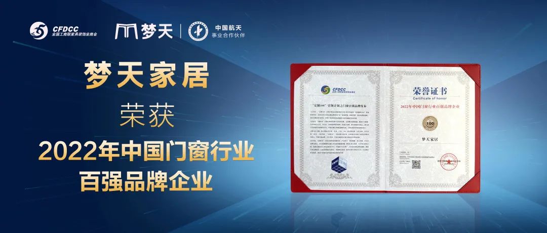 在此次活动中,梦天家居凭借着雄厚的品牌实力及良好的市场口碑,荣获“2022年中国门窗行业百强品牌企业”证书,是对梦天家居卓越品质及优质服务的最好嘉誉。