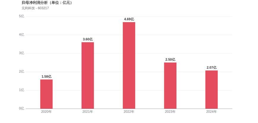 利润角度分析,2020年元利科技实现归母净利润1.58亿元,2024年2.07亿元。归母净利润在经历2021年和2022年的快速增长后,近两年出现下滑趋势。