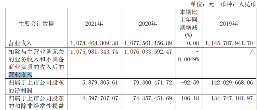 报告期内,爱丽家居实现营业收入10.78亿元,较上年度同期上涨0.08%;实现利润总额-102.05万元,较上年同期减少10,106.20万元;归属上市公司股东的净利润587.98万元,较上年同期下降92.59%;归属于上市公司股东的扣除非经常性损益后的净利润为-459.77万元,较上年同期7,435.75万元减少7,895.52万元。