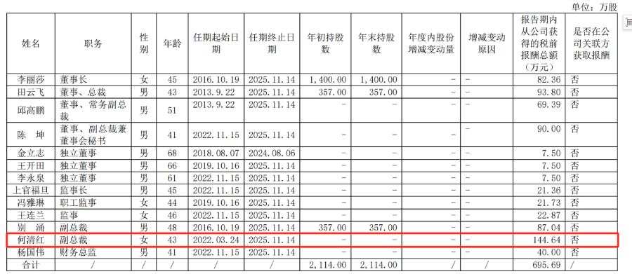 据济民健康年报,何清红2023年税前报酬144.64万元,系公司当年唯一一名年薪超过百万的高管。