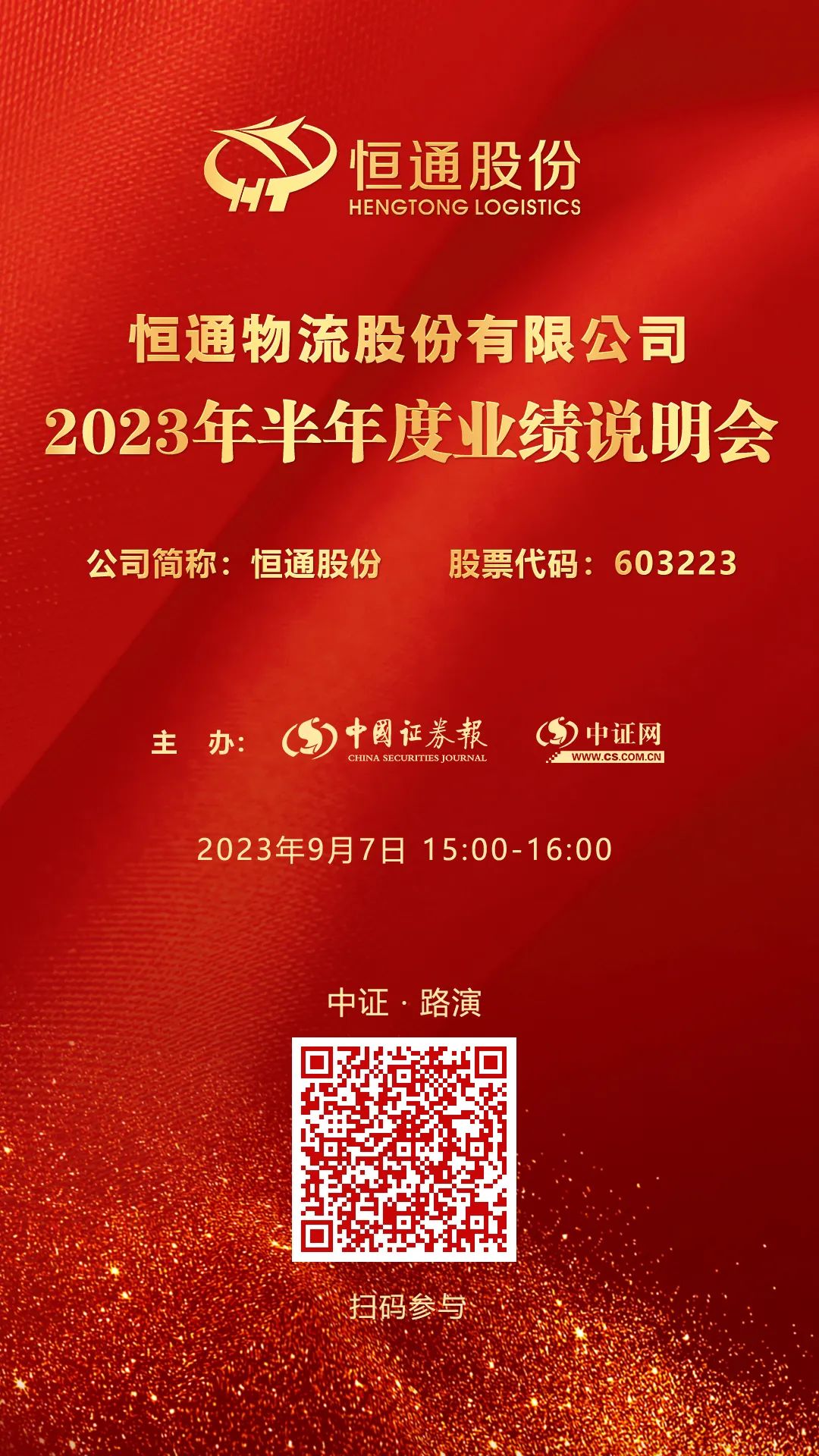 恒通股份2023年半年度业绩说明会9月7日在中证网举行